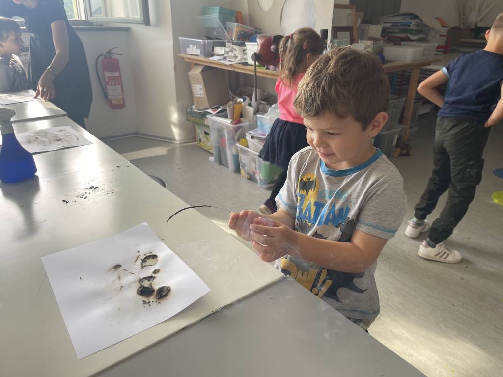 Seznámily se s legendou o svatém Václavovi a vyslechly jaký to byl člověk. Jejich výtvarnou tvorbu inspiroval obraz Svatopluka Klimeše, který využil netradiční výtvarný prostředek - OHEŇ. Využití netradičního výtvarného materiálu, kterým byla prskavka, prožíval každý úplně jinak. Některé děti měly trochu strach a vyčkávaly na pomoc dospělého. Ostatní zase ,,hořely" touhou co nejrychleji prskavkou začít kreslit. Každý si do svého rozpracovaného díla dokreslil obyčejnou tužkou člověka, o kterém se domnívá, že je sv. Václavovi podobný svojí dobrosrdečnou povahou.....takového člověka, který koná samé dobro. Obrazy dětí na krátkou dobu vystavíme v šatně, aby se mohli podívat ostatní kamarádi, kteří s námi v GASKu nebyli. Závěrem si troufám říci, nejen za sebe, ale i za děti, že program byl tak skvělý, že se už teď těšíme na ten příští, který nás čeká 21. listopadu.