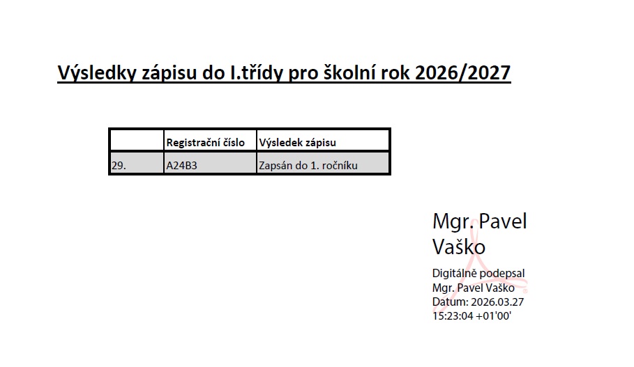 Výsledky zápisu do 1.třídy 2026/2027