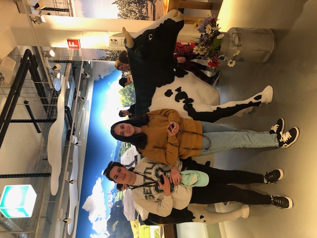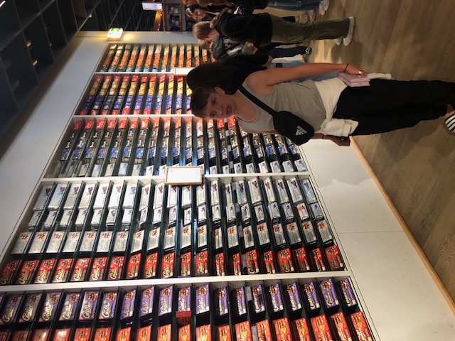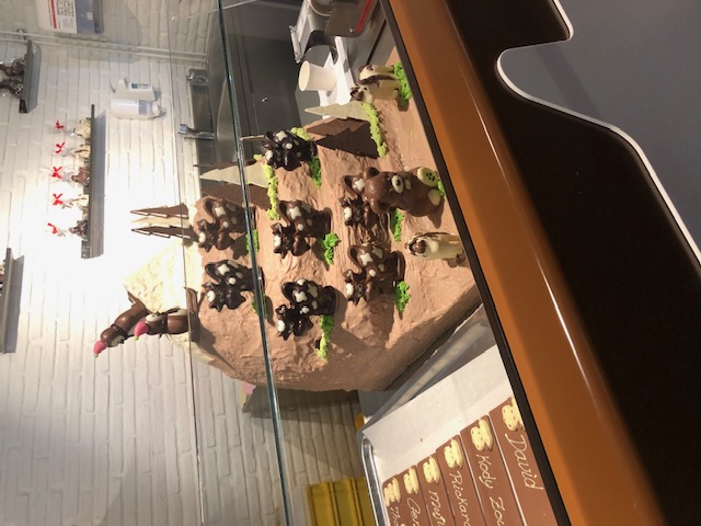 Zastávka v městečku Broc měla sladký nádech. Po shlédnutí a vyslechnutí historie výroby čokolády a jak se dostaly čokoládové boby dostaly do Evropy nás čekala ochutnávka oříšků a malých čokoládiček, abychom věděli,co si máme v obchůdku koupit. Oči by jedly,ale my ne. Whatsapp (na mobilu)