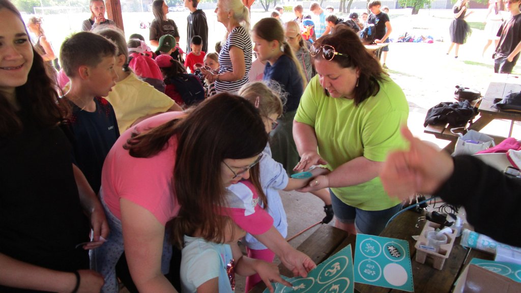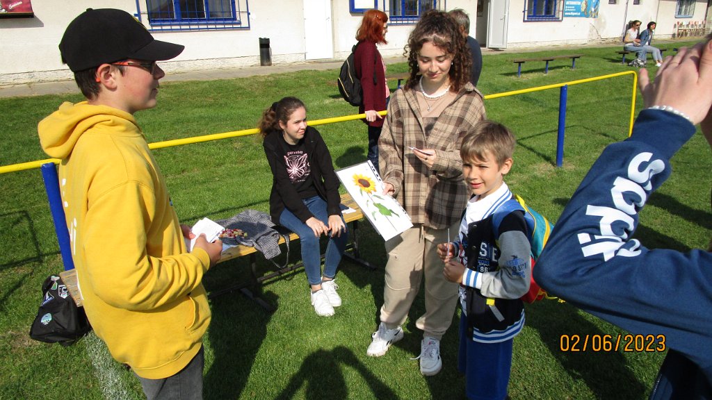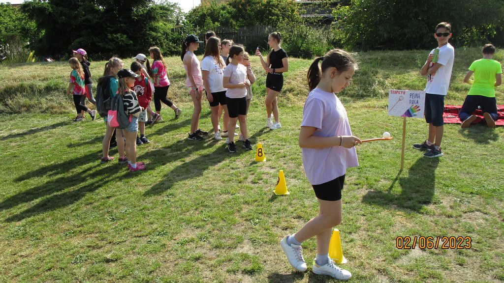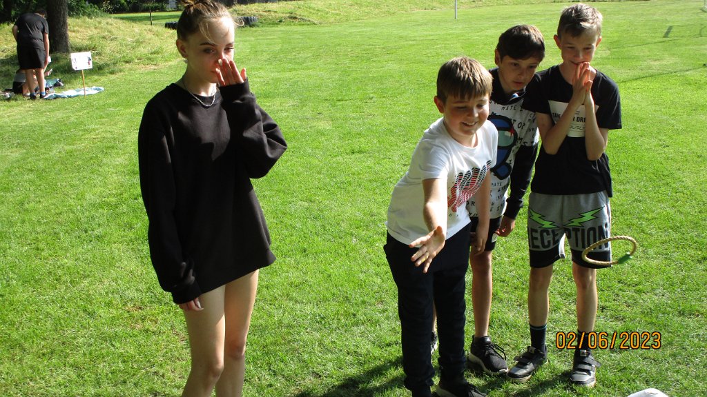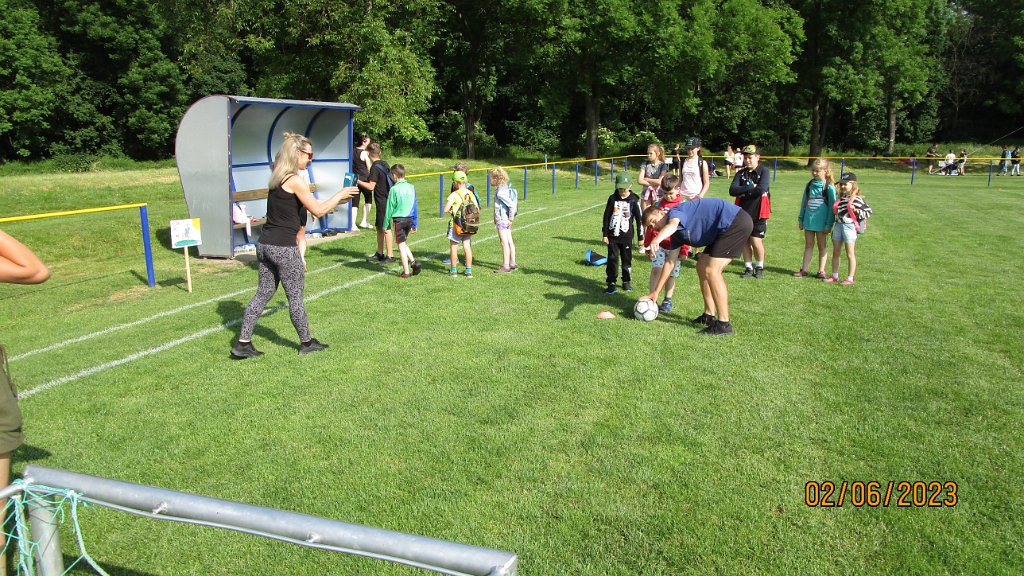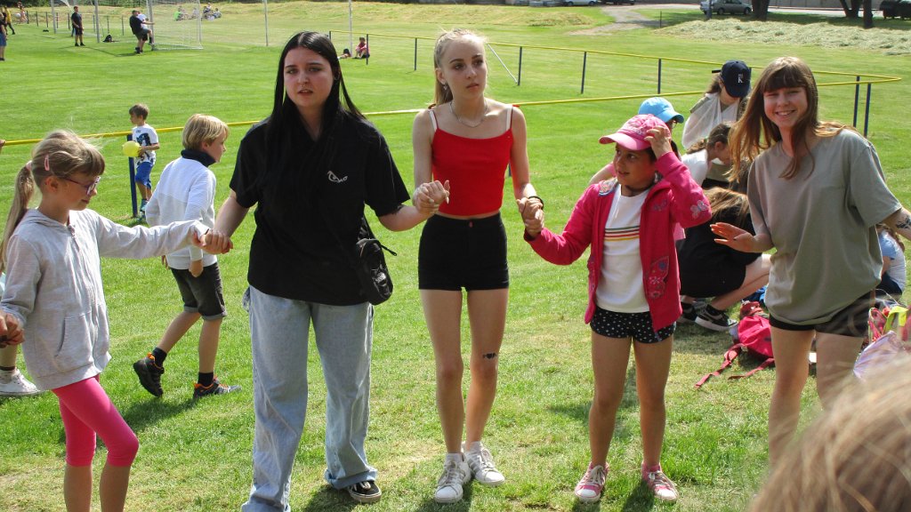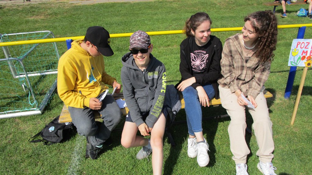 V pátek 2. 6. proběhlo na hřišti sportovní a soutěžní dopoledne ke Dni dětí. Žáci 7. až 9. tříd se stali průvodci a rozhodčími na jednotlivých stanovištích.