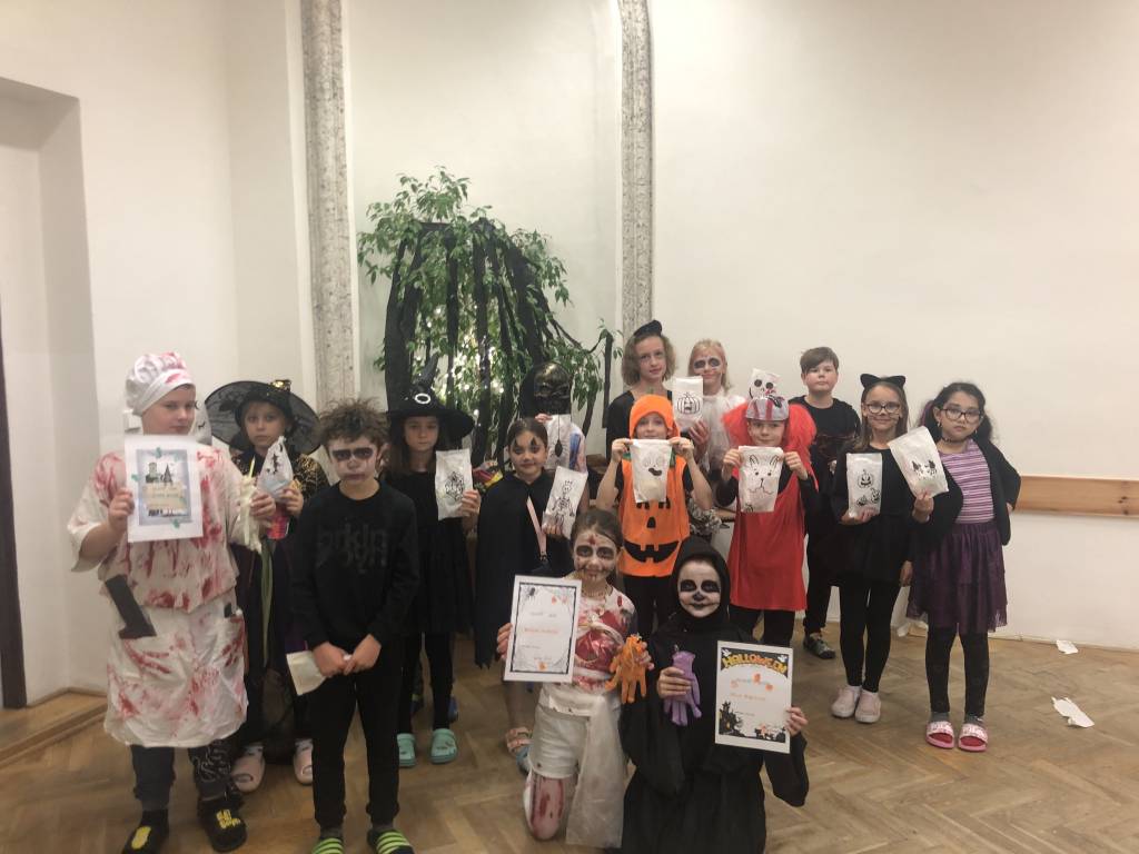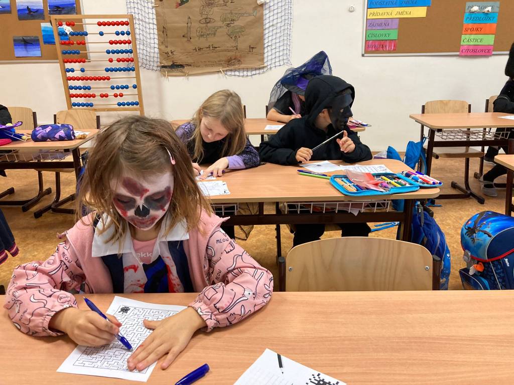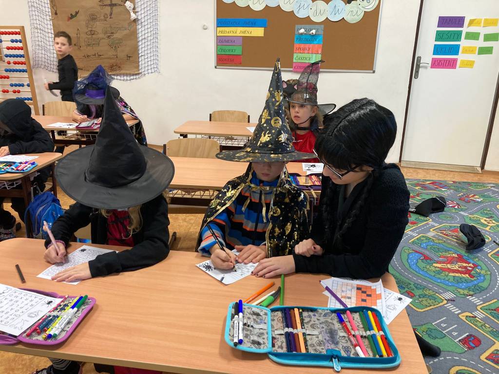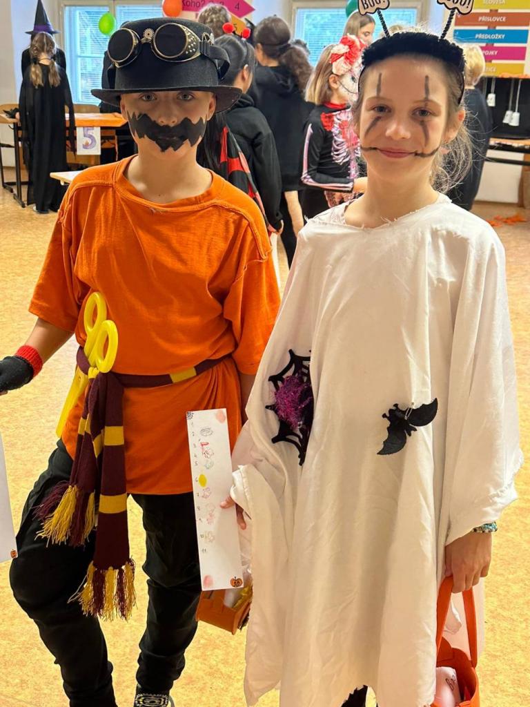 Každá třída z druhého stupně si připravila pro přidělenou třídu z prvního stupně program. První hodinu si dvě strašidla připravila halloweenské učeníčko (křížovky, počítání ,vyrábění strašidýlek atd.) , aby si zbytek třídy z druhého stupně mohl připravit stanoviště. Moc se jim to povedlo. Pak od druhé hodiny se prvostupňová strašidýlka přesunula do jejich tříd, kde plnila halloweenské úkoly, soutěže nebo si zatančila na diskotéce či se naučila nový tanec, ale také proběhl halloweenský tělocvik dle rozpisu. Všechna strašidla měla výbornou kondici. Nakonec byly vybrány nejlepší masky a všechny děti dostaly sáček se sladkou odměnou, na které se podílela Unie rodičů, ZŠ a rodiče. Někteří z rodičů i podpořily třídní rauty upečenými sladkostmi. Akce se povedla, a tak si prohlédněte foto. text: D. M. Whatsapp (na mobilu)