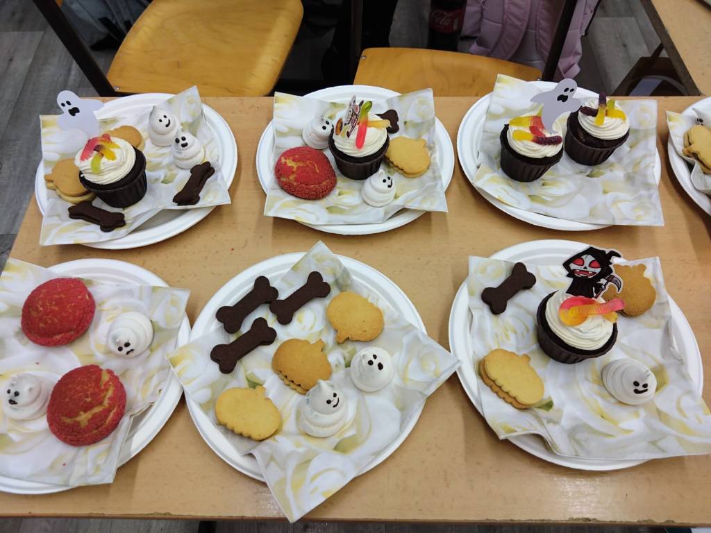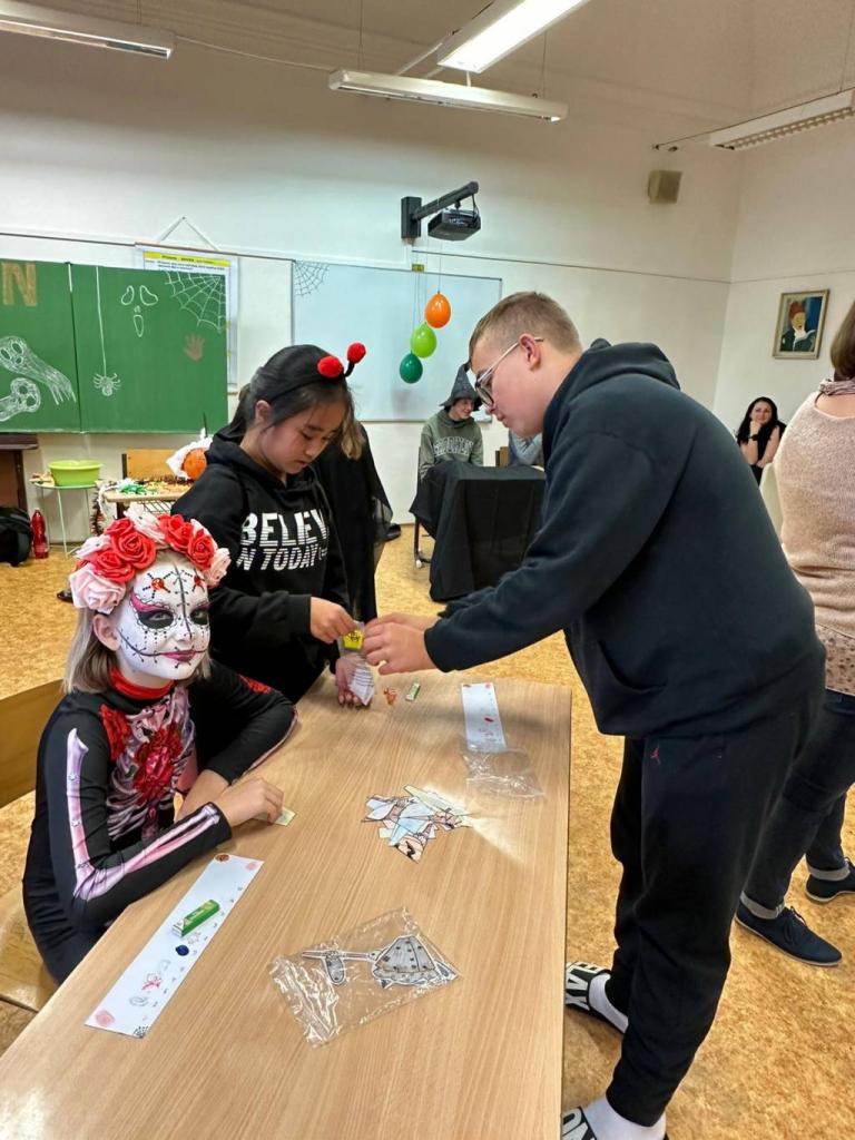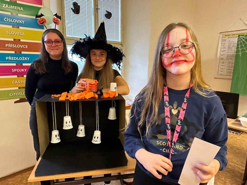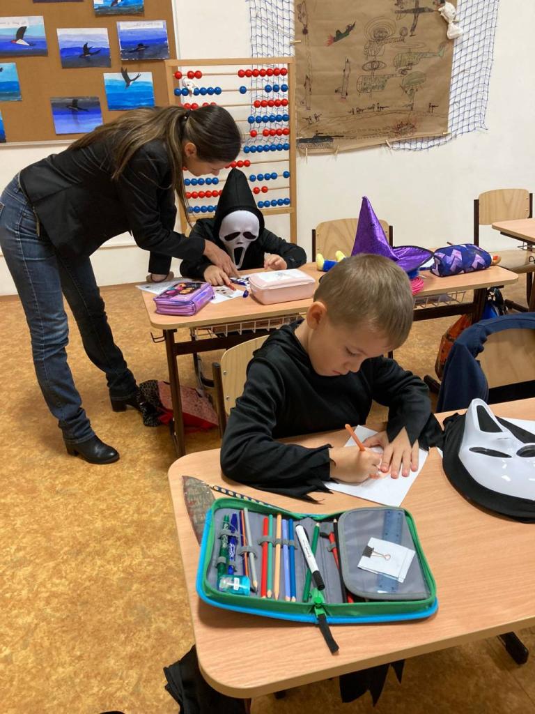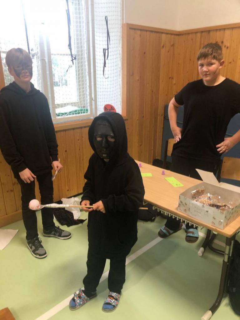 Každá třída z druhého stupně si připravila pro přidělenou třídu z prvního stupně program. První hodinu si dvě strašidla připravila halloweenské učeníčko (křížovky, počítání ,vyrábění strašidýlek atd.) , aby si zbytek třídy z druhého stupně mohl připravit stanoviště. Moc se jim to povedlo. Pak od druhé hodiny se prvostupňová strašidýlka přesunula do jejich tříd, kde plnila halloweenské úkoly, soutěže nebo si zatančila na diskotéce či se naučila nový tanec, ale také proběhl halloweenský tělocvik dle rozpisu. Všechna strašidla měla výbornou kondici. Nakonec byly vybrány nejlepší masky a všechny děti dostaly sáček se sladkou odměnou, na které se podílela Unie rodičů, ZŠ a rodiče. Někteří z rodičů i podpořily třídní rauty upečenými sladkostmi. Akce se povedla, a tak si prohlédněte foto. text: D. M. Whatsapp (na mobilu)
