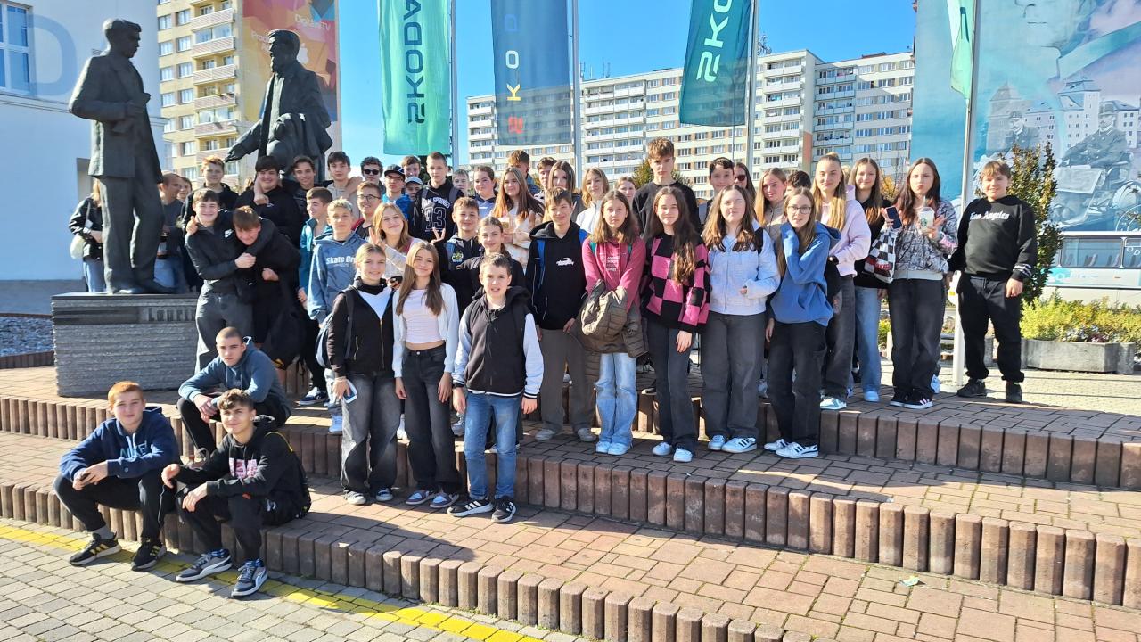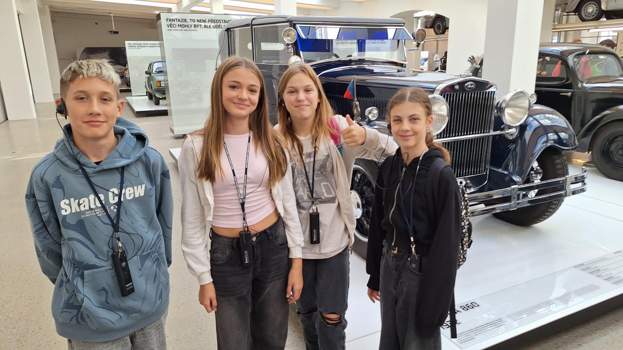 V úterý 15. října vyrazili deváťáci a osmáci na exkurzi do výrobního závodu Škoda auto Mladá Boleslav. Sešli jsme se v 7:45 před školou a jeli autobusem do Mladé Boleslavi. Po příjezdu na místo jsme šli nejprve do hlavní budovy, kde si nás převzali průvodci. S nimi jsme nejdříve jeli do hlavní výrobní haly, kde jsme mohli pozorovat, jak se auta krok po kroku vyrábějí a montují. Bylo zajímavé sledovat práci zaměstnanců a zjistili jsme, že dá velkou práci auto vyrobit. V další budově se především svářelo a vyráběly se zde součástky. Zde jsme viděli pracovat především roboty. Následně jsme se přesunuli do muzea, kde jsme se mohli podívat na staré typy automobilů, kterými se jezdilo dříve. Po muzeu byly tabule s informacemi o jednotlivých vozidlech. Když jsme si vše důkladně prohlédli, dostali jsme asi hodinový rozchod. Mohli jsme si dát něco k jídlu a podívat se po okolí. Kolem 13:30 jsme odjížděli zpět do Nových Dvorů. Výlet se nám všem moc líbil.