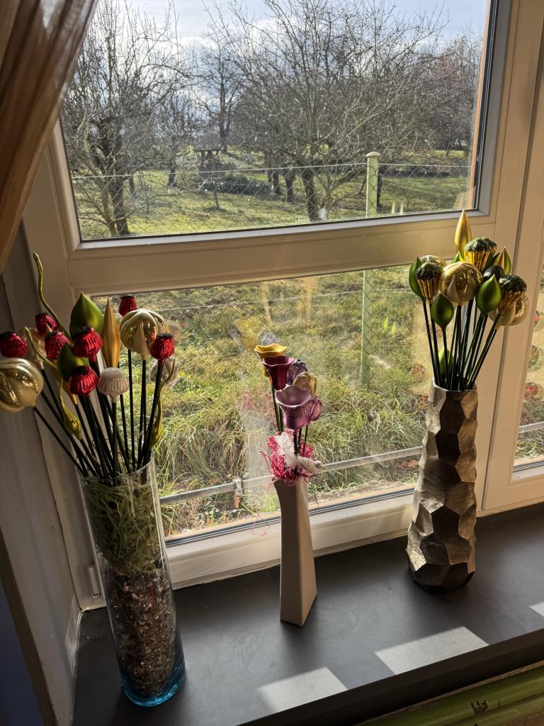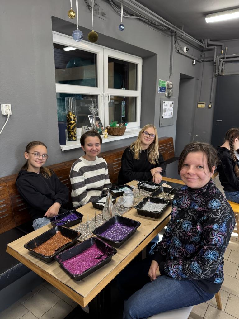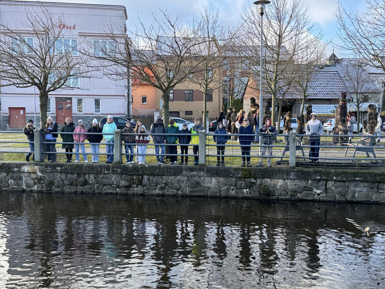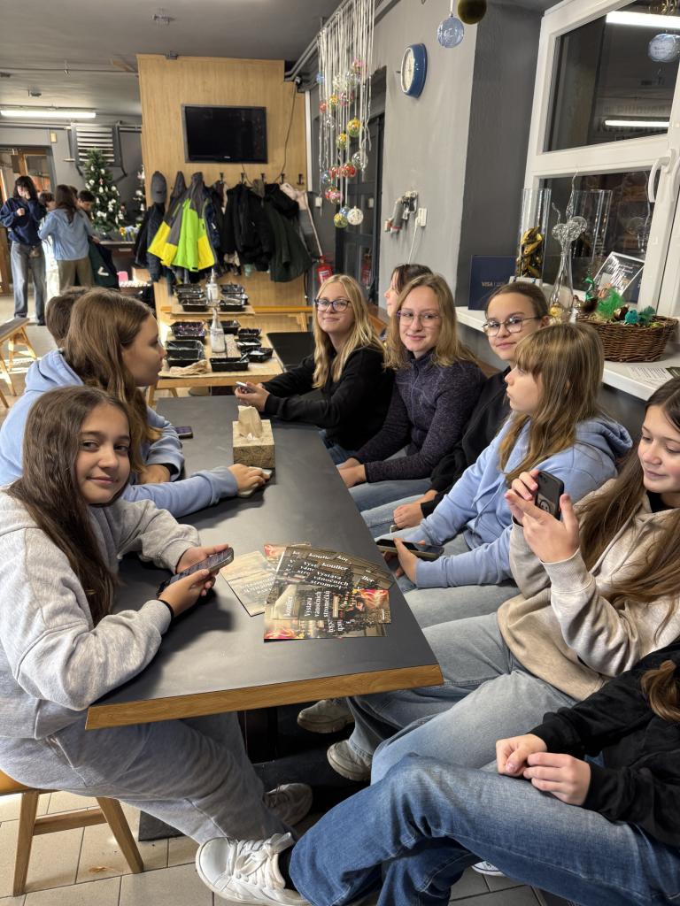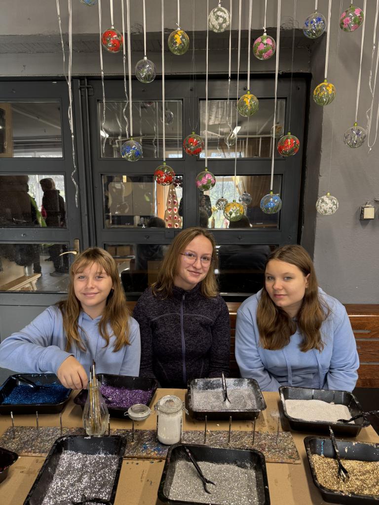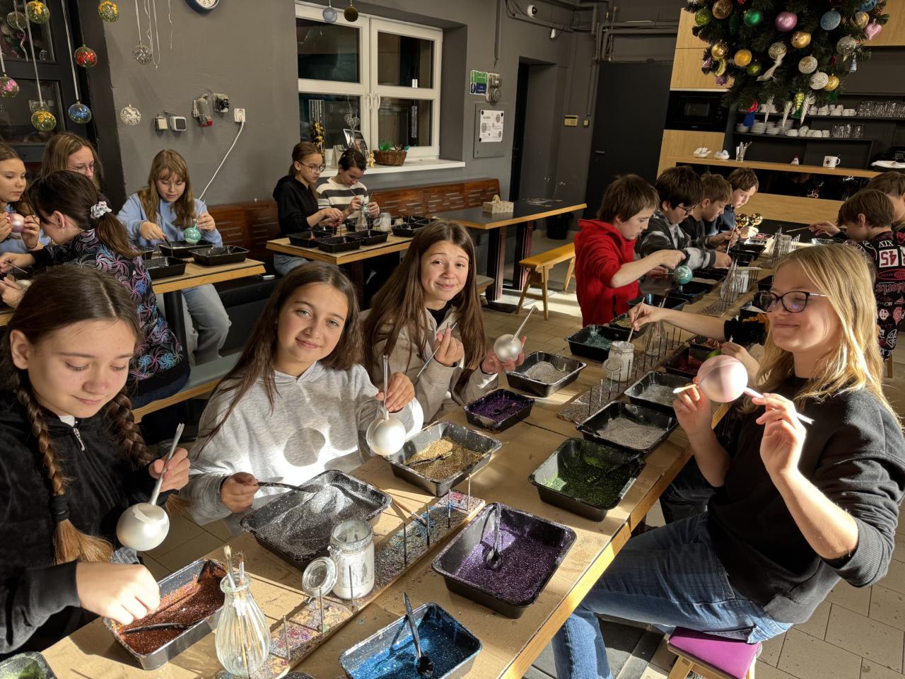 Roubenky v Hlinsku jsme si prohlédly sami, ale dostávali jsme záludné otázky v češtině i angličtině. Zjistili jsme jak bydlí ševc, pilníkář, hračkář atd. V jednom z domků je expozice masopustních masek z Hlinecka ( zapsáno v UNESCO ). Pak jsme se přesunuli do firmy Koulier v Oflendě. Prohlédli jsme si výstavu vánočních stromků, hledali jsme nejhezčí stromek nebo dvojice, které k sobě patří. Navštívili jsme místní obchůdek s ozdobami. Nakonec nás čekala prohlídka firmy od foukání skla až po zdobení a balení ozdob (nesmělo se tam fotit) .Pak jsme si sami vyzkoušeli zdobení ozdob ,zjistili jsme , že to není nic jednoduchého. Bylo to super.