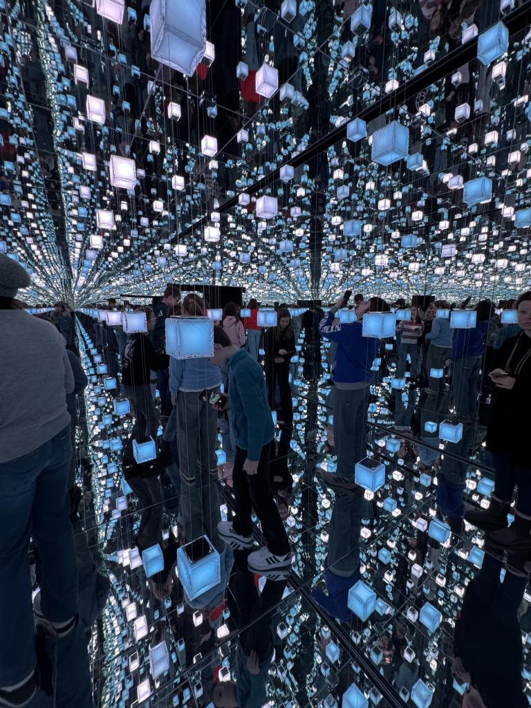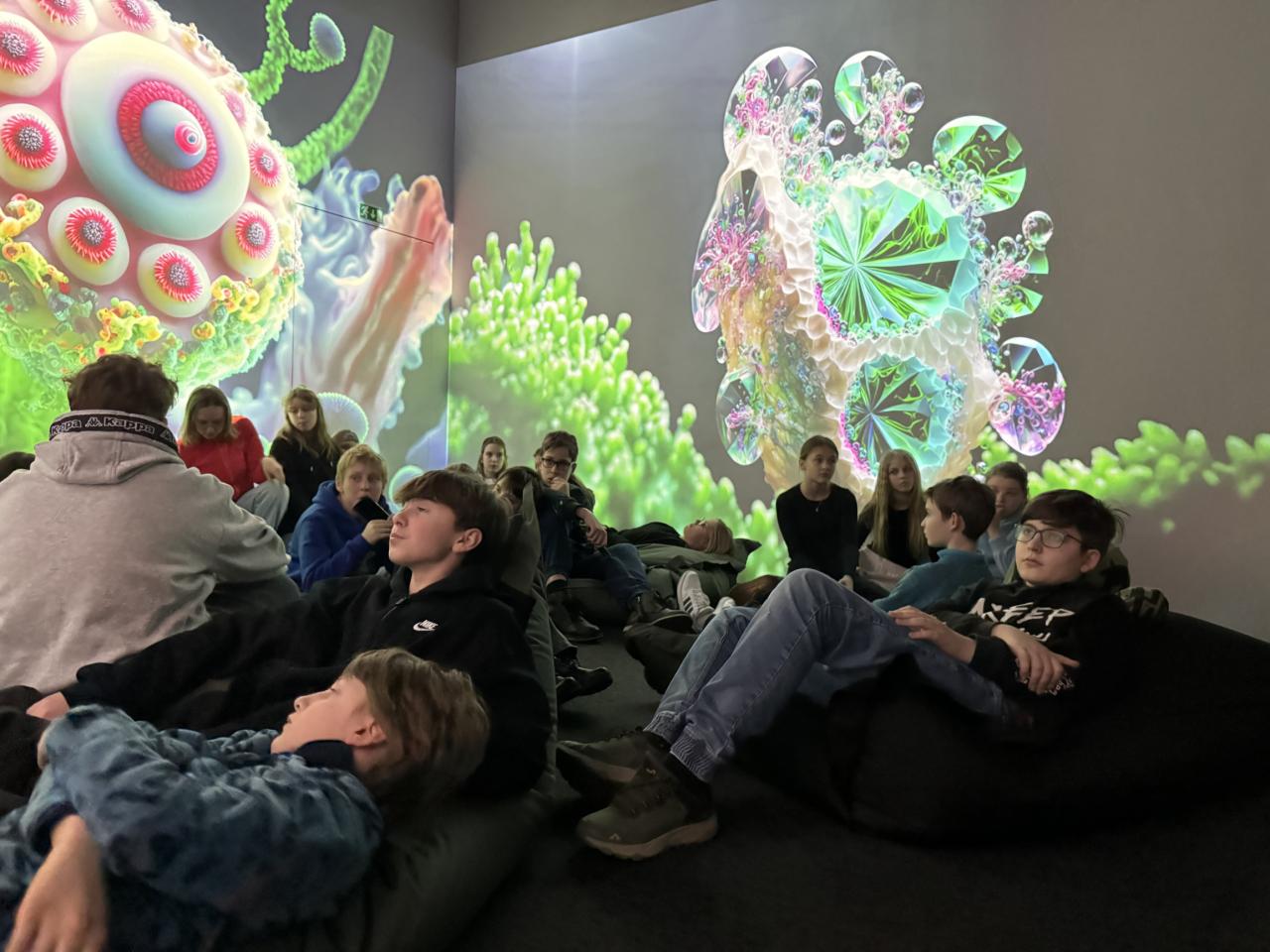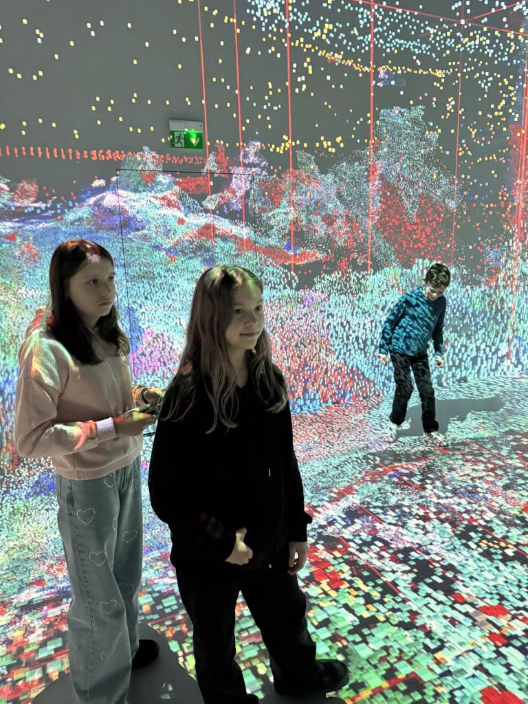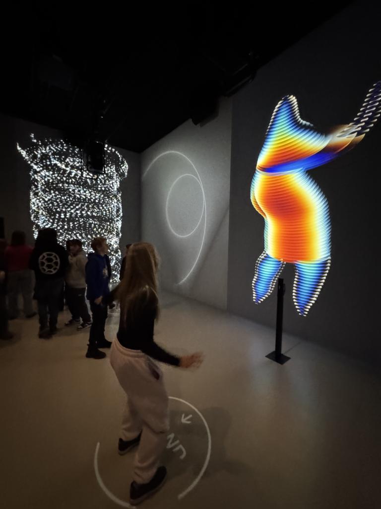 Naši cestu do galerie jsme si zpříjemnili krátkou procházkou Prahy a poznáváním historických objektů či kontroverzních děl Davida Černého. Signal Space je největší galerie digitálního umění "Echoes of Tomorrow", která se nachází na místě původní Staroměstské novorenesanční tržnice, jejíž dominantou je kopule, kterou vidíte původní litinovou konstrukci ve tvaru pětilodní baziliky. Galerií nás provázela slečna průvodkyně, která nám zkombinovala historii , budoucnost a moderní digitální umění (kombinace světla, zvuku a technologie). Vše si hrálo s naší představivostí a pohltilo naše smysly, ale také jak technologie může ovládat robota, který výtváří sousoší podle fotografie. Také jsme zde navštívili prodejní výstavu Petra Puflera "CzechBox", kde propojuje sklo, světlo a přírodní prvky. Odnesli jsme si nezapomenutelné vizuální zážitky od nejlepších českých a světových umělců.